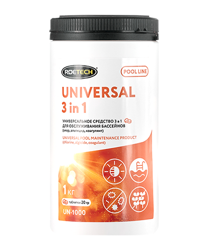 Универсальное средство 3 в 1 для обслуживания бассейнов (хлор, альгицид, коагулянт)