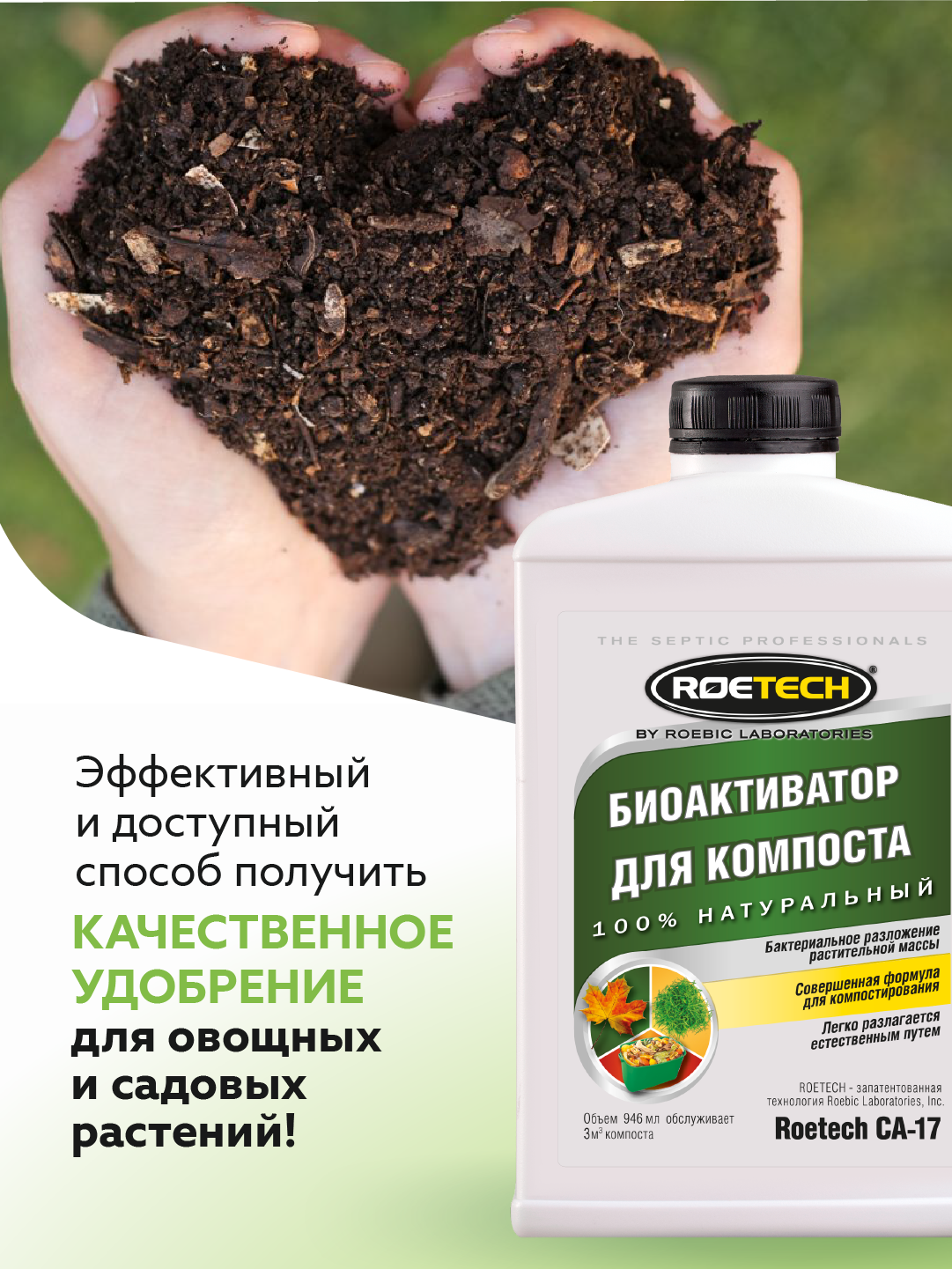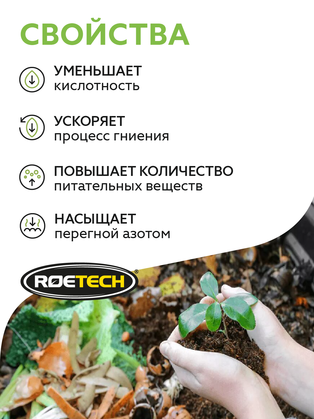 С помощью Roetech CA-17  вы можете значительно сократить время, необходимое для создания богатого питательными веществами компоста, который станет отличной основой для вашего сада. Компостирование станет более эффективным благодаря активным компонентам, которые способствуют быстрому разложению как растительных, так и животных остатков. Ваша почва получит не только улучшенные характеристики, но и дополнительную порцию полезных микроорганизмов.
